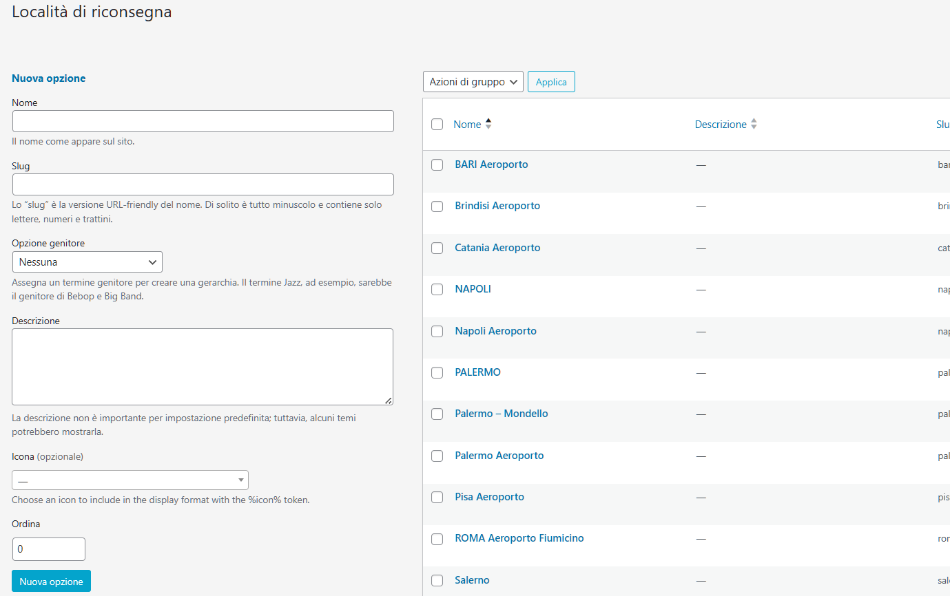 As select options there are about 150 locations (Italian provincial capitals)