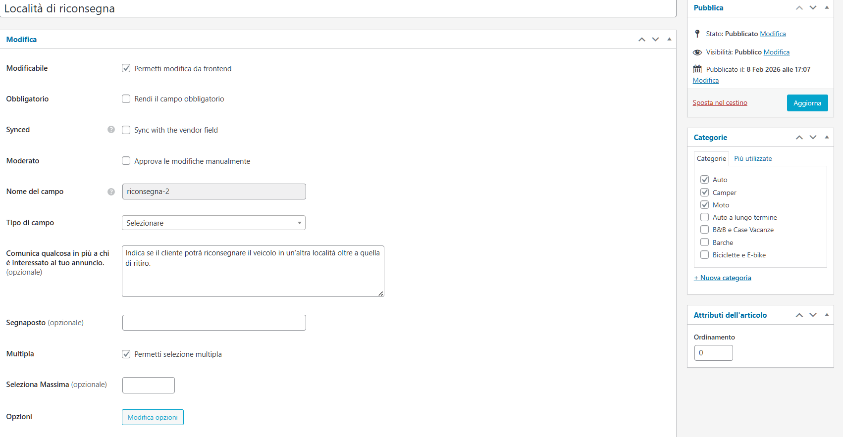 After creating a field in attributes and inserting its options as select, I noticed that if there are many options, the data in the field is only returned if you’re logged in. If you’re not logged in, it says “results cannot be loaded.” This happens whether the field is displayed in the search or in the filter. Can you please help? This field is essential for my site. Thanks