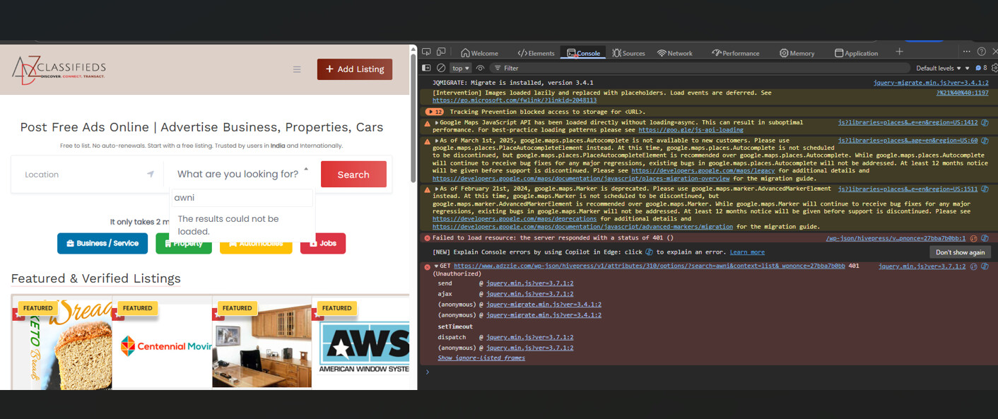 Currently fixed by uploading an older version of hivepress plugin. 1.7.19. website: https://www.adzzie.com