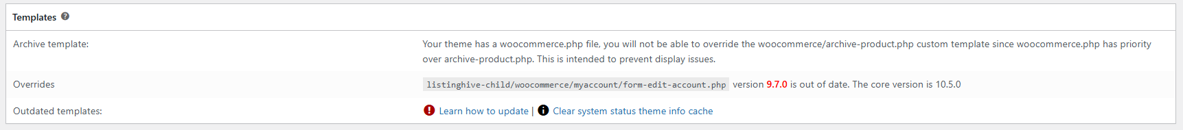 Now there may be no errors or problems, but Woo does not display this for nothing perhaps changes are made to the template in anticipation for future updates, who knows.
